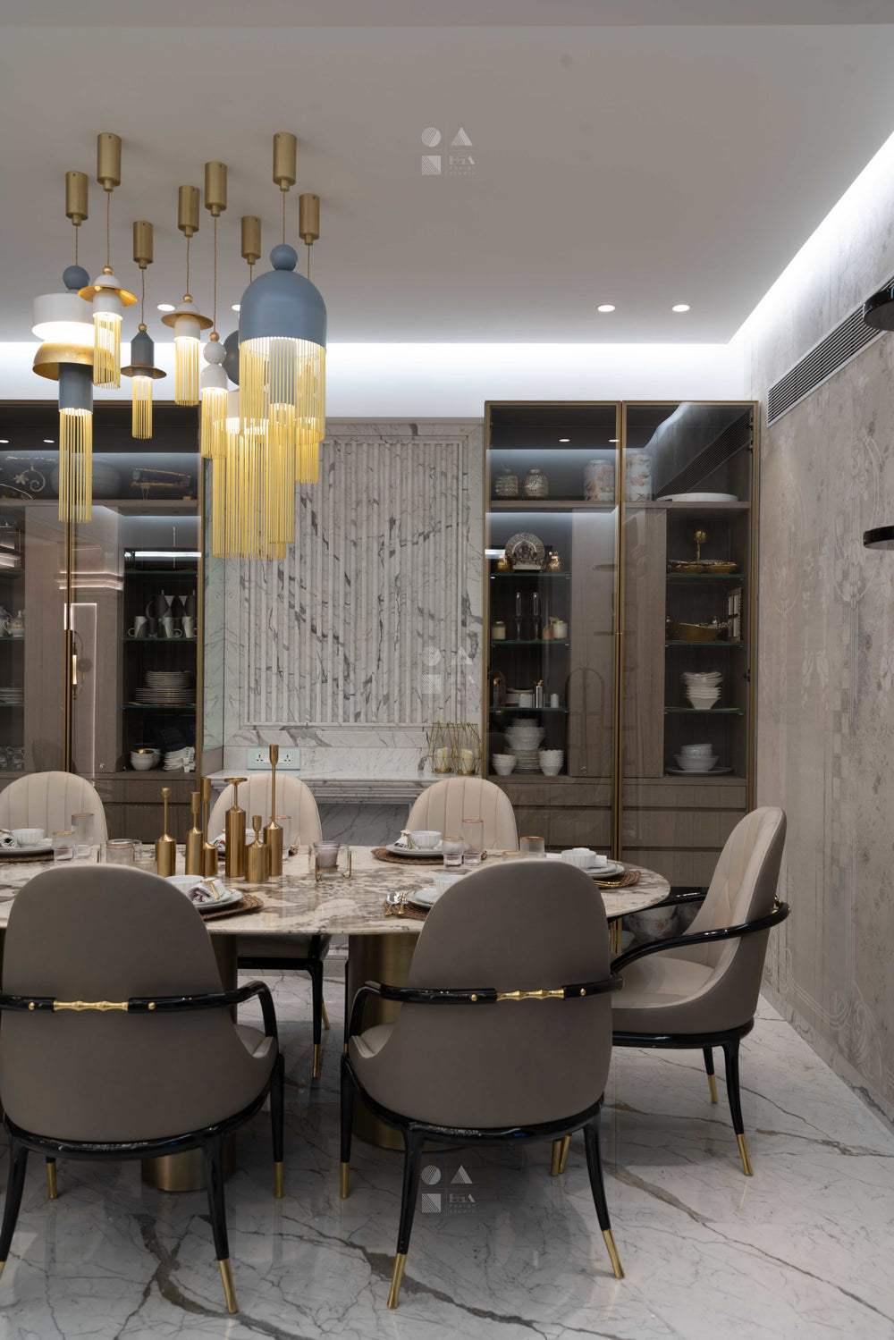 A Palate of Premium Finishes: We utilized a rich tapestry of high-gloss surfaces, precious metallic accents, and refined stone, all unified by clean, contemporary lines and an understated elegance.